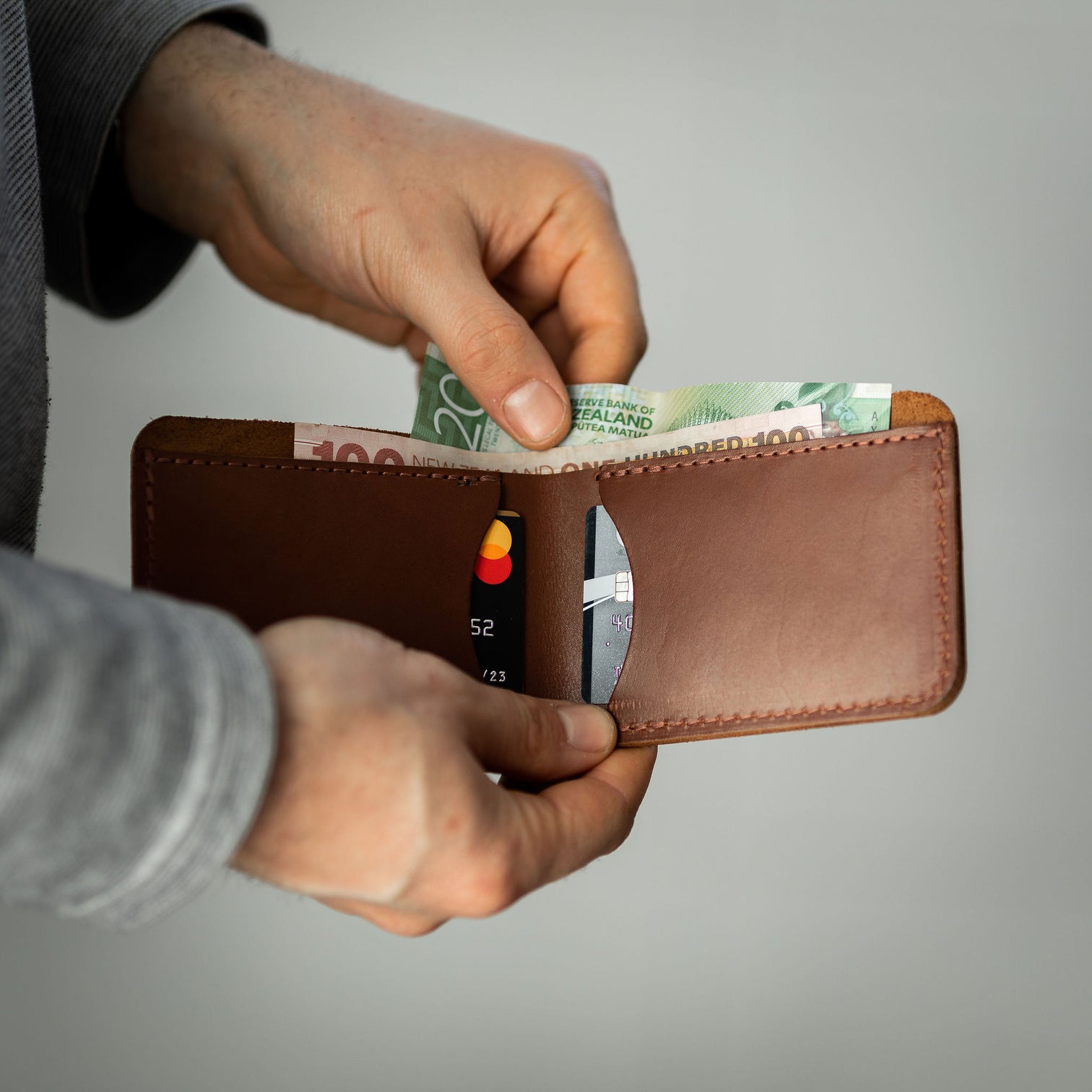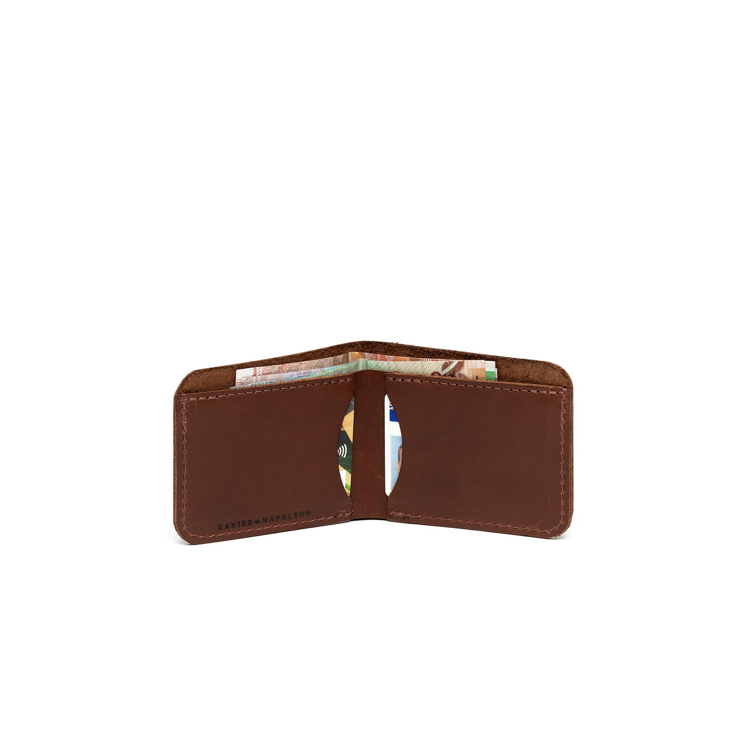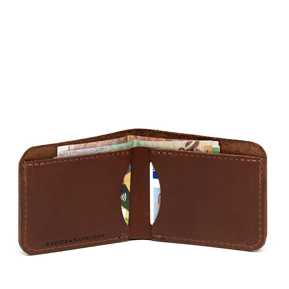 Every Xavier Napoleon wallet is hand-cut and crafted from full-grain New Zealand sourced leather. We have intentionally avoided the use of nylon fabric and zips, as they are typically the first to deteriorate and shorten the lifespan of a wallet. We stitch these with thread that withstands mildew, rot, UV, and saltwater damage.